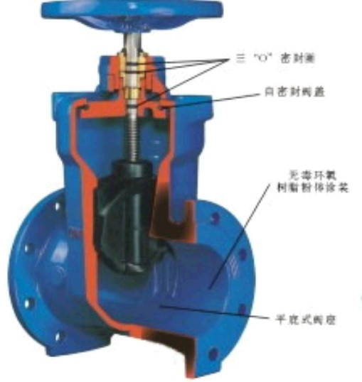 轉動手輪,通過手輪與閥桿的螺紋的進、退,提升或下降與閥桿連接的閥板,達到開啟和關閉的作用。